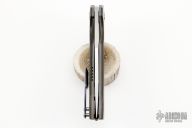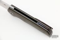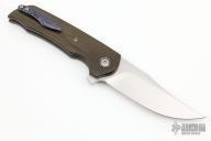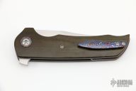 This Wyvern linerlock flipper from Walter Randolph features a hand rub satin finished blade with flipper. The handle has green linen micarta scales, zircuti pivot collars, floating backspacer and tip up clip, bead blasted titanium liners. Nice detent, lockup and blade seating. Comes with a velcro case. Excellent condition.