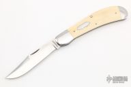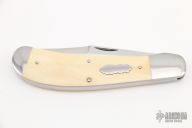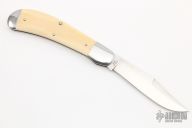 This slipjoint by Jack Davenport features a hand rub satin finished blade with nail nick. The handle has stainless steel bolsters, liners and escutcheon, mammoth ivory covers, stainless steel spring. Has half-stop, flush in all positions. Comes with a zippered case. Excellent condition. Dated 1998