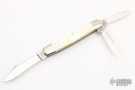 This slipjoint by the late Paul Myers features a mirror polished blades with nail nicks. The handle has dovetailed nickel silver bolsters, gold lip pearl covers, fileworked nickel silver liners, stainless steel springs. Has half-stops. Comes with a zippered case. #597 on the ricasso. Excellent condition.