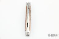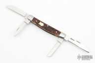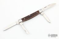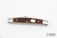 This slipjoint by Bill Simons features satin finished blades with nail nicks. The handle has stainless steel bolsters, jigged bone covers, stainless steel liners and springs. #326 inside the spring. Comes with a zippered case. Has a couple very light scratches, otherwise excellent condition.