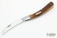 This Pruner by Dan Burke features a hand-rubbed satin finished blade with nail nick. The handle has fluted stainless steel bolsters, liners and escutcheon, jigged bone covers, stainless steel spring. Comes with a zippered case. Excellent condition. #2