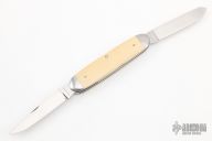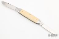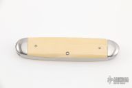 This slipjoint by Jack Davenport features hand rub satin finished blades with nail nicks. The handle has stainless steel bolsters, liners and pins, mammoth ivory covers, stainless steel springs. Comes with a zippered case. Excellent condition.