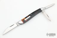 This 2-Blade Seahorse Whittler by Dan Burke features hand rub satin finished blades with nail nicks. The handle has stainless steel bolsters, tortoise shell covers with a stainless steel escutcheon, stainless steel liners and spring. Includes a padded zippered case. Excellent condition.