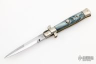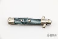 This Picklock Auto features a mirror finish spear point blade. The handle consists of nickel silver bolsters and synthetic scales over brass liners and stainless steel backspacer. Steel push button. The knife is marked "Ethan 1953 Italy".  Has a few light scratches, otherwise excellent condition.