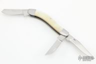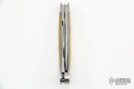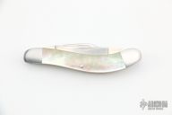 This Slipjoint by Joe Knipstein features hand rub satin finished blades with nail nicks. The handle has stainless steel bolsters with integral liners, stainless steel springs, stainless steel escutcheon, gold lip pearl covers. #002 on blade. Comes with a zippered case. Excellent condition.