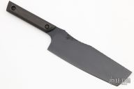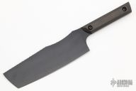 This Nakkiri by Half Face Blades features a black blade with a full tang construction and a rock pattern spine. .108" Blade Stock. 2.211"Blade Depth. The handle has lightening strike carbon fiber scales. Excellent Condition.