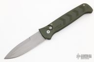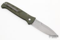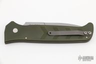 This Militia Auto by Rob Dalton features a bead blast finished blade and a green anodized aluminum frame with safety. Titanium clip, tip up carry. Powerful coil spring action. Has some light scuffs and scratches, great condition otherwise.