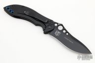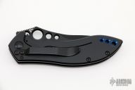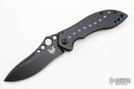 This 635BK-503 Mini Skirmish is a Neil Blackwood Design executed by Benchmade and is a limited edition. It features a black coated recurved, drop point blade with swedge, notched thumb ramp and thumbhole. The handle has a black coated with anodized milling over black barrel spacers. Black coated stainless steel tip down clip. Includes original box, papers, and drawstring pouch.Excellent Condition.