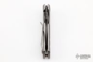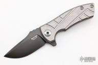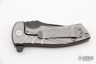 This ESV Flipper by Les George features a DLC finished Magnacut blade with notched thumbrest and a flipper. The handle has a milled stonewashed titanium frame and titanium pocket clip for tip up carry. Smooth function with a lock up and nice detent. New from maker! Comes with a zippered case.