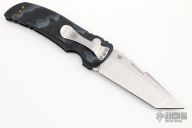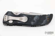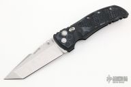 This Hogue/Elishewitz design features a stonewashed blade with dual thumbstuds and notched thumbrest. The handle has milled G-Mascus G10 frame with button lock, safety and tip down carry clip. Includes original box and papers. Excellent condition.