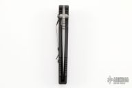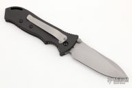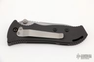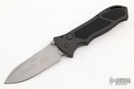 This Point Man Auto from Masters of Defense features a bead blasted spear point blade with swedge, notched thumbrest, dual thumbstuds and partially serrated edge. The handle has a black anodized aluminum with non-slip inlays on the "A" side over an inlaid steel lockbar. Stainless steel tip down clip. Lanyard hole in pommel. Includes the original box and sheath.  Excellent Condition.