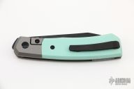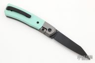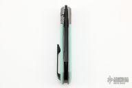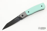This Canibl by Suprlativ Knives features a PVD finished blade with a notched front flipper. The handle has a bead blasted titanium frame, G-10 scales, titanium backspacer with lanyard pin and tip up clip with hidden screws. Rides on bearings, nice detent, lockup and blade seating. Has stainless lockface insert. Comes with original box. Excellent Condition.