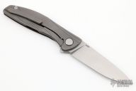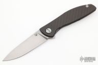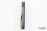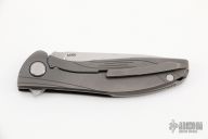 This HatiOn Lite by Shirogorov Knives features a tumble finished drop point blade with flipper. The handle has a red/black textured Carbon Fiber "A" side and a tumbled titanium lockside over a titanium backspacer with recessed lanyard bail. 3D Machined titanium pocket clip is positioned for right hand, tip up carry. Comes with original box and papers. Excellent condition.