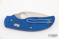 This Sage 3 Bolt Action by Spyderco features a satin finished blade with thumb hole. Blue G-10 scales, stainless steel liners and tip up (right or left reversible) stainless steel clip. Has "Bolt Action" lock. Discontinued. Comes with original box and paper. Has a couple light scuffs, excellent condition otherwise.