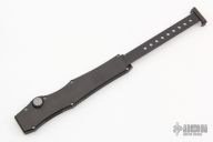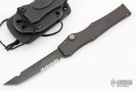 This HALO III is the tanto blade model in the HALO series by Microtech Knives. Single action, side positioned button for firing. Closure via a reverse charging handle in the rear of the frame. Contoured frame grip with milled ribbing on the frame spine and belly. Dated 11/99 and S/N 0373. Includes a kydex sheath, box and papers.  Excellent Condition.