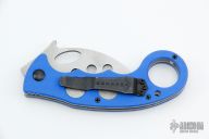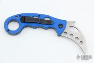 This Combat Karambit trainer by Emerson Knives has instructions on use. Blue G-10 scales, titanium liners, black barrel spacers, tip up reversible black stainless clip. Original box and papers. Has some scuffs and scratches, great condition otherwise.