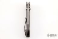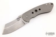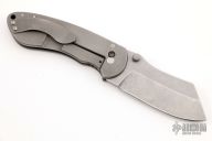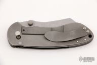 This Mid-Tech V1 by Michael Burch of Burchtree Bladeworks features a tumble finished clip point blade with dual thumbstuds and notched thumbrest. The handle is comprised of a tumbled titanium frame over a black G10 backspacer. Titanium tip up clip and lanyard hole in pommel. Has a few light scuffs, otherwise excellent condition.