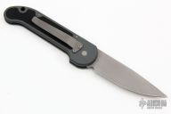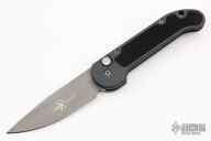 This LUDT side opening automatic by Microtech Knives has a bead blasted drop point blade.  The handle has a black anodized aluminum frame with rubber inlay on both sides. Dated 5/96, S/N 054.  Includes the original box and papers. There are a few light scratches on the frame otherwise the knife is in Excellent Condition.