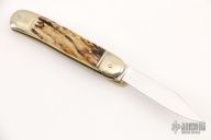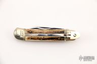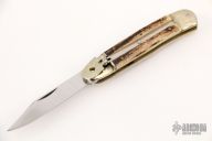 This leverlock auto by Hubertus features a mirror polished blade, nickel silver double bolsters, stag scales, and brass liners and pins. Opens with a nice snap. Very fast opening. Has a few light scratches, otherwise excellent condition.