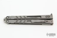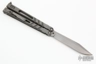 This Alpha Beast Balisong from Blade Runner Systems (BRS) features a tumble finished clip point blade. The handle is comprised of titanium with T latch on pommel. Includes original box. Has a couple light scuffs, excellent condition otherwise.