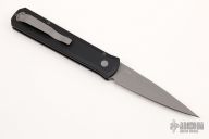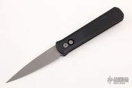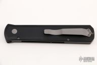 This Godfather by Pro-Tech features a bead blasted blade with notched thumbrest. The handle has a black aluminum frame with bead blasted hardware and black stainless steel tip up clip. Comes with original box and papers. New condition.