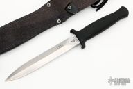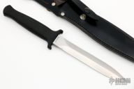 This Guardian II by Gerber features a double edged satin finished blade, .240" blade stock and .938" blade depth, hidden tang construction. The handle is black coated cast aluminum. Comes with a black leather sheath, original box and papers. Excellent condition. #A6910S