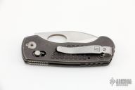 This knife by Kevin Wilkins features a satin tumble finished drop point blade with thumbhole. The handle has a heavy orange peel finish/anodized frame with g10 backspacer and reversible tip up stainless steel clip. Has scuffs and scratches throughout, good user condition.