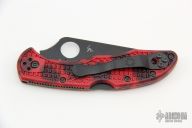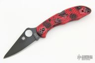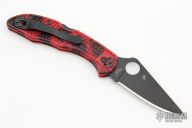 This Spyderco Delica 4 knife has a Zome FRN handle and a full-flat ground blade that is black with a plain cutting edge.