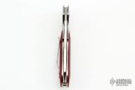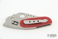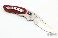 This Phoenix by Spyderco is a Howard Viele Design. The blade is satin finished with thumbhole opening. The handle has a titanium frame with red G-10 scales, stainless steel backspacer, and a tip up stainless steel clip. New condition. Comes with original box and papers. still has plastic protective covers.