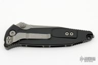 This Socom Elite manual linerlock folder by Microtech Knives has an apocalyptic finish blade with notched thumbrest and dual thumbstuds. Has a black aluminum handle with non-slip inlays, tip down blasted stainless steel clip. Serial number 10965 and dated 10/2022. Comes with original box and papers. Excellent condition.