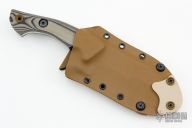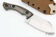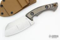 The Boras by Nathan House features a satin finished blade with a full tang construction, .215" Blade Stock 2.190" Blade Depth. The handle has G-10 scales, lanyard hole at the butt. Includes a kydex sheath with belt loop. New from maker.