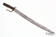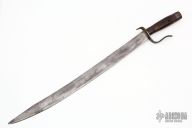 This sword is believed to be a civil war era sword. It features a carbon steel blade with natural patina, .222" blade stock and 1.256" blade depth, hidden tang construction. The handle has a forged steel guard, wood grip with steel fittings. Has scratches and patina, light pitting, otherwise good condition for its age.