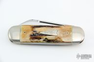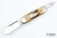 This Elephant Toe slipjoint by Case Knives has two mirror polished blades with nail nicks. The handle has nickel silver bolsters, stag covers, brass liners and pins, steel spring. Has a few light scratches, otherwise excellent condition. Comes with original box and papers.