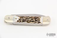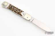 This leverlock auto by Hubertus features a mirror polished clip point blade, nickel silver double bolsters, stag scales, and brass liners and pins. Opens with a nice snap. Very fast opening. Comes with original box. New condition.