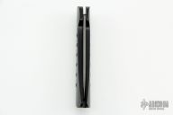This Skinwalker by Rob Dalton features a bead blast blade. The handle has a black anodized drilled aluminum frame. Excellent condition.