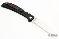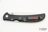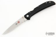 This Eagle Ultralight lock back by Al Mar Knives has a satin finish blade with dual thumb studs and partial serrations. Black linen micarta scales and a black pocket clip. Strong lock up. Has some light scratches,otherwise excellent condition.
