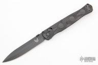 This SOCP 4.5 by Benchmade features a black blade with false top edge and a thumbdisc. The handle has black FRN scales, black stainless steel liners and clip, 4-way reversible. Comes with original box and papers. Comes with extra clip, tool and locktite. Excellent condition.