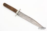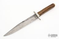 This Antique Bowie by George Wostenholm and Son features a clip point blade with false top edge, .187" blade stock and 1.233" blade depth, full tang construction. The handle has a nickel silver guard and stag scales. This knife is pretty rough, but there is enough of the makers mark to know who made it. The guard is loose, the scales have shrunk, has been resharpened and used a lot, the spine of the blade has hammer marks on it from years of use, poor condition. But for what it is, its still a pretty cool old antique bowie. Imagine all the tales it could tell.