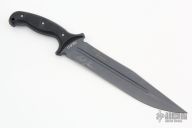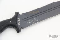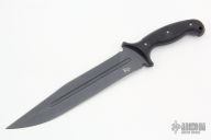 This Swine Slayer by Todd Begg is #17 of 350, it features a black coated double edged blade with fullers, .265" blade stock and 1.766" blade depth, full tang construction. The handle has black G-10 scales. Comes with a zippered case. Has a few light scuffs, otherwise excellent condition. Was hand signed by Todd Begg. It is believed that only 18 of these were actually made.
