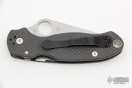 This C223CF52100P Para 3 by Spyderco features a satin finished clip point blade with thumb hole and notched thumbrest. The handle is comprised of a carbon fiber frame over nested steel liner and stand offs. The steel pocket clip is 4 way adjustable. Includes original box and paperwork. Excellent condition.