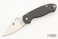 This Sprint Run Para 3 by Spyderco features a satin finished clip point blade with thumb hole and notched thumb rest. The handle is comprised of a carbon fiber frame over nested steel liners and stand offs. The steel pocket clip is 4 way adjustable. Includes original box and paperwork. Excellent condition.