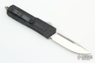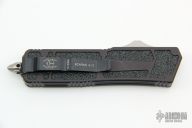 This Scarab OTF automatic features a satin finished single edge blade and black aluminum handle with non-slip inserts. Serial number 11/2009. Includes original box, sheath and paperwork. Has a couple light scuffs, otherwise excellent condition.