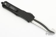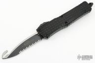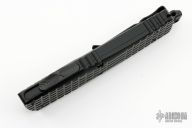 The Microtech Combat Troodon's is one of the largest dual action OTFs (Out The Front) knives available today, the Combat Troodon is the larger version of the Microtech Troodon. Hitting the ruler at almost 10 inches in total length with a 4 inch blade the combat troodon is a formidable battle ready tool, featuring CNC cut jimping on all faces of the handle and a larger slider for easy firing and retracting of the blade while wearing gloves.