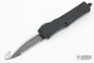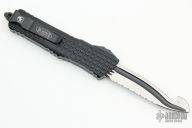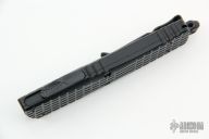 The Microtech Combat Troodon's is one of the largest dual action OTFs (Out The Front) knives available today, the Combat Troodon is the larger version of the Microtech Troodon. Hitting the ruler at almost 10 inches in total length with a 4 inch blade the combat troodon is a formidable battle ready tool, featuring CNC cut jimping on all faces of the handle and a larger slider for easy firing and retracting of the blade while wearing gloves.