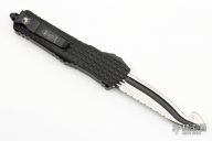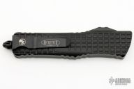 The Microtech Combat Troodon's is one of the largest dual action OTFs (Out The Front) knives available today, the Combat Troodon is the larger version of the Microtech Troodon. Hitting the ruler at almost 10 inches in total length with a 4 inch blade the combat troodon is a formidable battle ready tool, featuring CNC cut jimping on all faces of the handle and a larger slider for easy firing and retracting of the blade while wearing gloves.