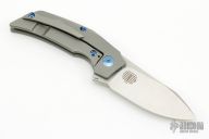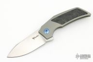 Experience Reate quality in a scaled down EDC friendly size with the Tashi Bharucha designed T2500. This T2500 model showcases a bead blasted titanium handle with a carbon fiber inlay and a satin finished blade. Ceramic bearings facilitate smooth and fast deployment of the stout yet effective blade. Blue ano hardware and a carbon fiber inlay elevate the design to gentlemen's carry status. This nimble T2500 folding knife offers distinctive Bharucha style and a pocket friendly design. Comes with original zippered case and extras. Excellent condition.