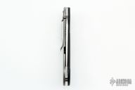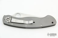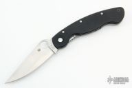 This Military framelock by Spyderco has a satin finished clip point blade with notched thumbrest and thumbhole. Handle is black G10, with titanium lock, black back spacer, stainless steel tip down clip, and lanyard tube pin. Comes with a Spyderco zippered case. Has a couple light scuffs, excellent condition otherwise.