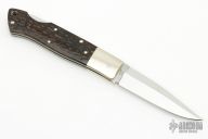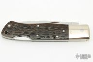 This "Jess Horn" edition of the Beretta Master Series features a mirror polished clip point blade with false top edge and nail nick. The handle is comprised of a nickel silver bolsters and dyed and jigged bone scales over nickel silver liners and stainless steel lockbar and backspacer. Lanyard tube in pommel. Numbered "206" on bolster. Comes with original box. Excellent condition.