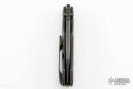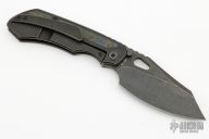 • Blackwash finished blade made of Bohler M390 in a clipped drop point style.