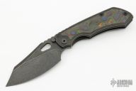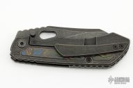 • Custom Carbon Fiber inlays on a titanium handle handle.